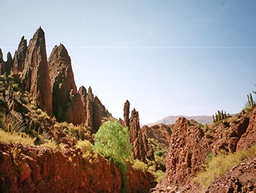 From Salta take the RN 68 direction Cafayate and at el Carril turn right direction Pulares. The road winds for kilometers through a breathtakingly colourful valley. It is decorated with moss green, rusty and grey coloured mountain walls, where high cacti grow along the road. You are here in the Quebrada de Escoipe and El Valle Encantado (the Enchanting Valley). The road leads to the highest point at over 3,700 m, Cuesta del Obispo (the Bishop's summit). From here you have a magnificent view over the valley which you just drove through. Then you descend and slowly but surely reach the N.P. Los Cardones. The landscape changes into plains with thousands of huge cacti.